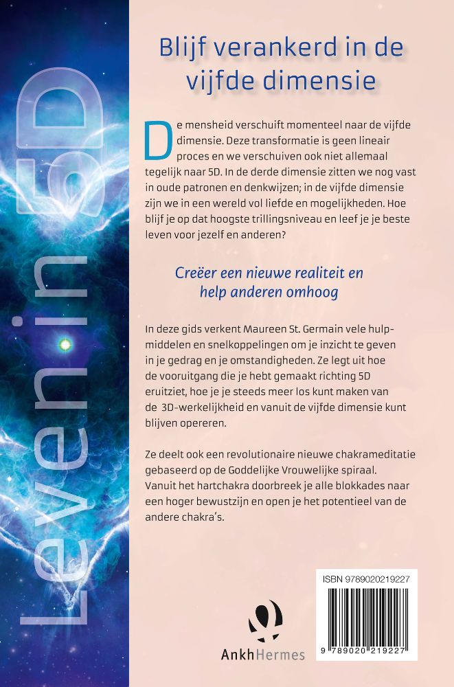 Met 'Leven in 5D' van Maureen J. St. Germain ga je ervaren wat het is om echt in de vijfde dimensie te leven. De mensheid is aan het verschuiven van de derde naar de vijfde dimensie. Deze grote transformatie is het liefdevolle antwoord op de onrustige tijd waarin we leven. In de vijfde dimensie is er meer aandacht voor ons welzijn en hoeven emotionele wonden niet langer geheeld te worden. Eenmaal in de vijfde dimensie kunnen vele uitdagingen je daar ook weer uit proberen te halen. Maureen St. Germain verkent een rijkdom aan spirituele hulpmiddelen en handige sluiproutes om dit te voorkomen en jezelf moeiteloos in de vijfde dimensie te verankeren.