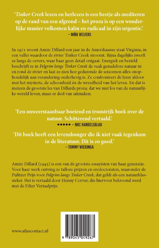 Het met de Pulitzer Prijs bekroonde ‘Pelgrim langs Tinker Creek is een subliem poëtisch essay, een zoektocht naar de betekenis van het leven en een natuurklassieker van jewelste.