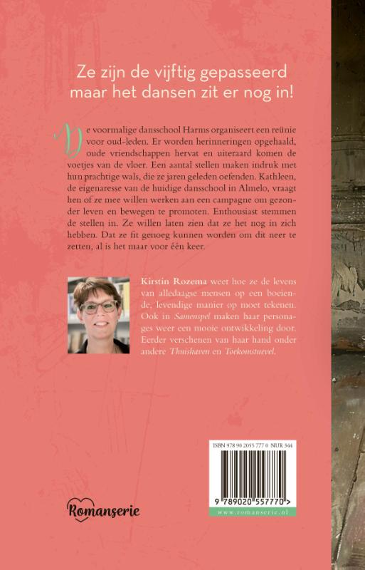 In 'Samenspel' van Kirstin Rozema kondigt een artikel in de krant de reünie voor leerlingen van voormalige dansschool Harms aan. Alle oud-leden zijn van harte welkom om samen te komen, herinneringen op te halen en natuurlijk te dansen. Op de avond van de reünie komen de voetjes algauw van de vloer en een aantal stellen maken indruk met hun prachtige wals, die ze jaren geleden oefenden. Ze zijn de vijftig gepasseerd, maar het zit er nog in! Kathleen, de eigenaresse van de huidige dansschool in Almelo, vraagt hen of ze mee willen werken aan een campagne om gezonder leven en bewegen te promoten. Enthousiast stemmen de stellen in. Ze willen laten zien dat ze het nog in zich hebben. Dat ze fit genoeg kunnen worden om dit neer te zetten, al is het maar voor één keer.
