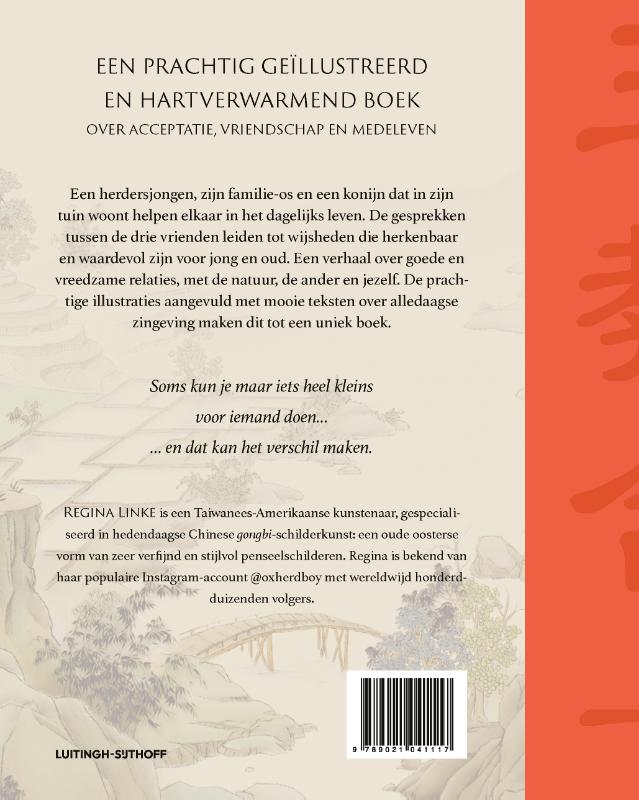 In De reis van de jonge ossenhoeder van Regina Linke helpen een herdersjongen, zijn familie-os en een konijn dat in zijn tuin leeft elkaar bij het navigeren in het dagelijkse leven. Dit prachtig geïllustreerde en hartverwarmende cadeauboek over alledaagse zingeving, gestoeld op oosterse filosofie, is voor de fans van De jongen, de vos, de mol en het paard.