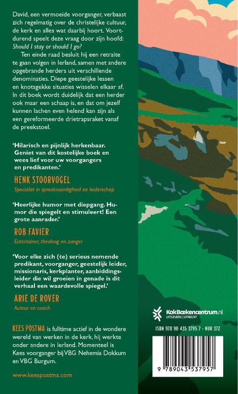 David, een vermoeide voorganger, verbaast zich regelmatig over de christelijke cultuur, de kerk en alles wat daarbij hoort. Voortdurend speelt de volgende vraag door zijn hoofd: ‘Should I stay or should I go?’ Ten einde raad besluit hij een retraite te gaan volgen in Ierland, samen met andere opgebrande herders uit verschillende denominaties. Diepe geestelijke lessen en knotsgekke situaties wisselen elkaar af. In dit boek wordt duidelijk dat een herder ook maar een schaap is, en dat om jezelf kunnen lachen even helend kan zijn als een gereformeerde drietrapsraket vanaf de preekstoel.