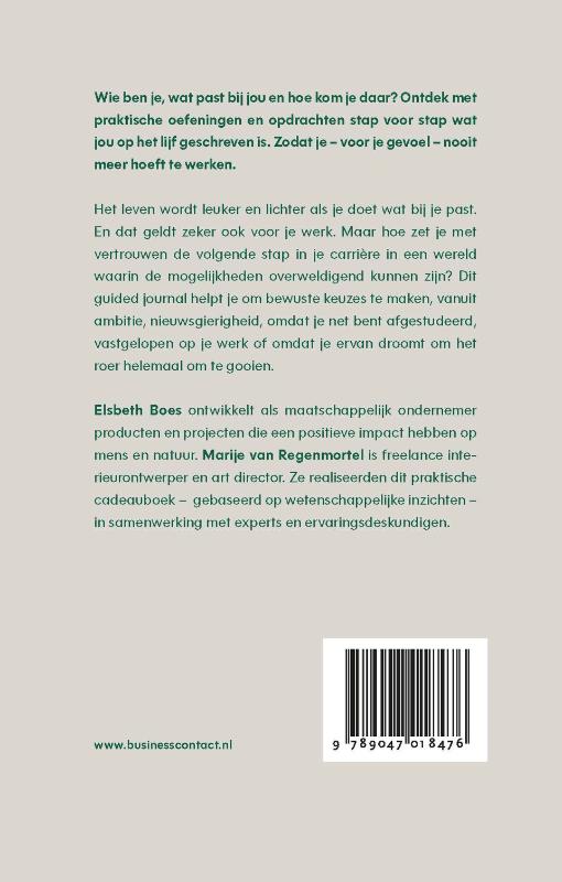 Het leven wordt leuker en lichter als je doet wat bij je past. En dat geldt zeker ook voor je werk. Maar hoe zet je met vertrouwen de volgende stap in je carrière in een wereld waarin de mogelijkheden overweldigend kunnen zijn? Dit guided journal helpt je om bewuste keuzes te maken, vanuit ambitie, nieuwsgierigheid, omdat je net bent afgestudeerd, vastgelopen op je werk of omdat je ervan droomt om het roer helemaal om te gooien.
