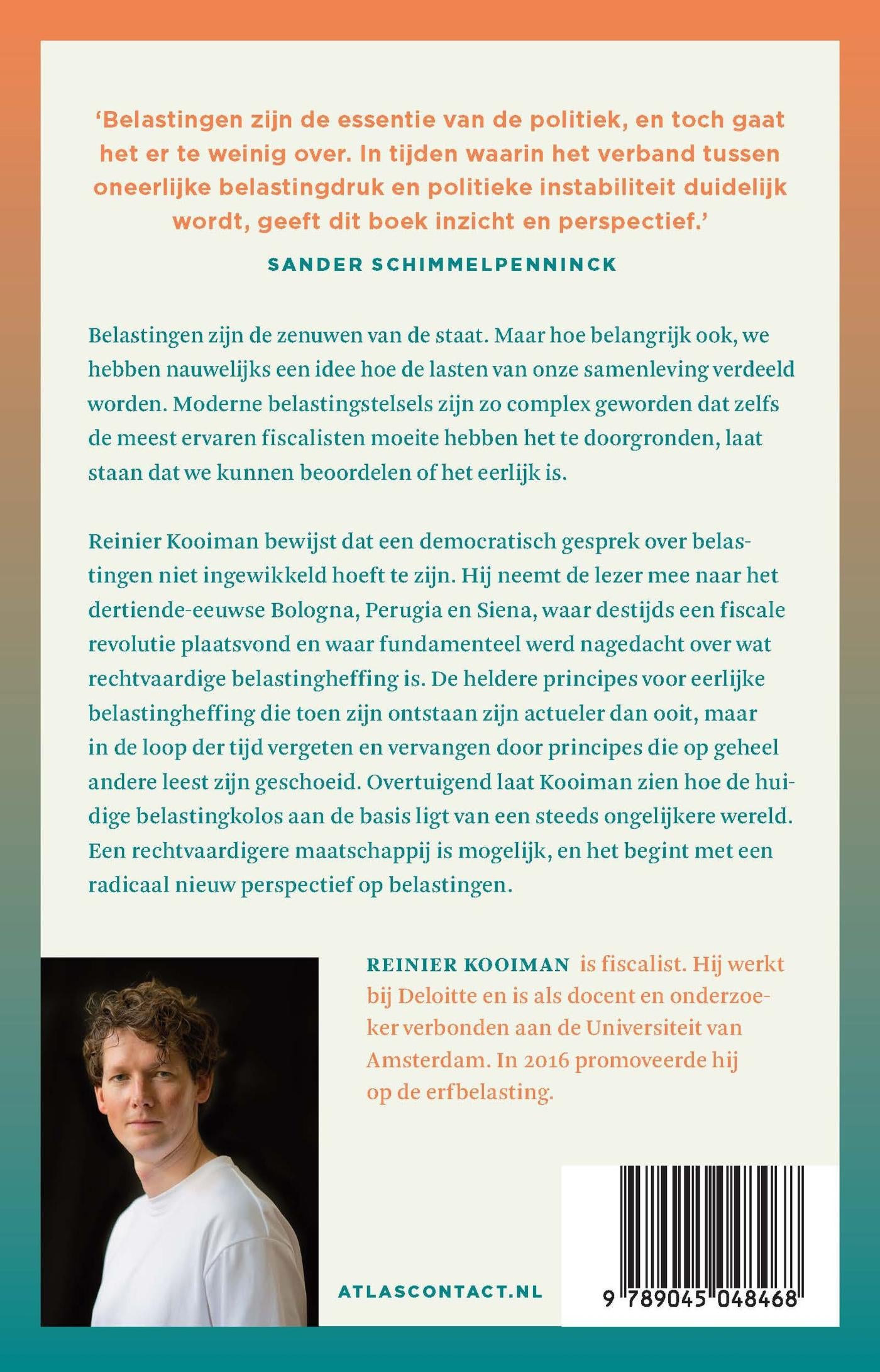 Belastingen zijn de zenuwen van de staat. Maar hoe belangrijk ook, we hebben nauwelijks een idee hoe de lasten van onze samenleving verdeeld worden. Moderne belastingstelsels zijn zo complex geworden dat zelfs de meest ervaren fiscalisten moeite hebben het te doorgronden, laat staan dat we kunnen beoordelen of het eerlijk is. Reinier Kooiman bewijst dat een democratisch gesprek over belastingen niet ingewikkeld hoeft te zijn. Hij neemt de lezer mee naar het dertiende-eeuwse Bologna, Perugia en Siena, waar destijds een fiscale revolutie plaatsvond en waar fundamenteel werd nagedacht over wat rechtvaardige belastingheffing is. De heldere principes voor eerlijke belastingheffing die toen zijn ontstaan zijn actueler dan ooit, maar in de loop der tijd vergeten en vervangen door principes die op geheel andere leest zijn geschoeid. Overtuigend laat Kooiman zien hoe de huidige belastingkolos aan de basis ligt van een steeds ongelijkere wereld. Een rechtvaardigere maatschappij is mogelijk, en het begint met een radicaal nieuw perspectief op belastingen.