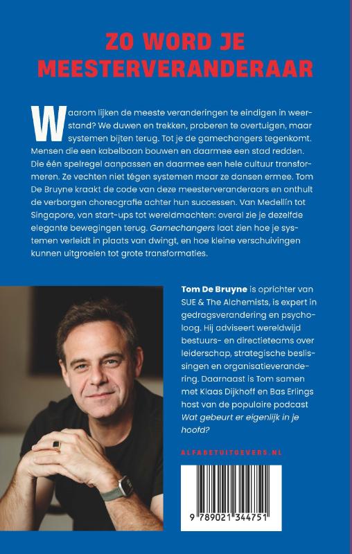Waarom is de ene interventie enorm effectief, terwijl een andere juist averechts werkt? In Gamechangers toont psycholoog en gedragsexpert Tom De Bruyne hoe kleine gerichte ingrepen grote veranderingen kunnen bewerkstelligen in organisaties, gemeenschappen en zelfs landen. Van de transformatie van Medellín, waar één kabelbaan de stad nieuw leven inblies, tot de verbazingwekkende metamorfose van Singapore van moeras naar wereldmacht. De Bruyne onthult universele principes die overal kunnen werken: in bedrijven die zichzelf opnieuw uitvinden, in steden die opleven, en zelfs in persoonlijke relaties die van koers veranderen. Dit boek is voor iedereen die in verandering gelooft, maar wil weten hoe dat werkt in de praktijk.