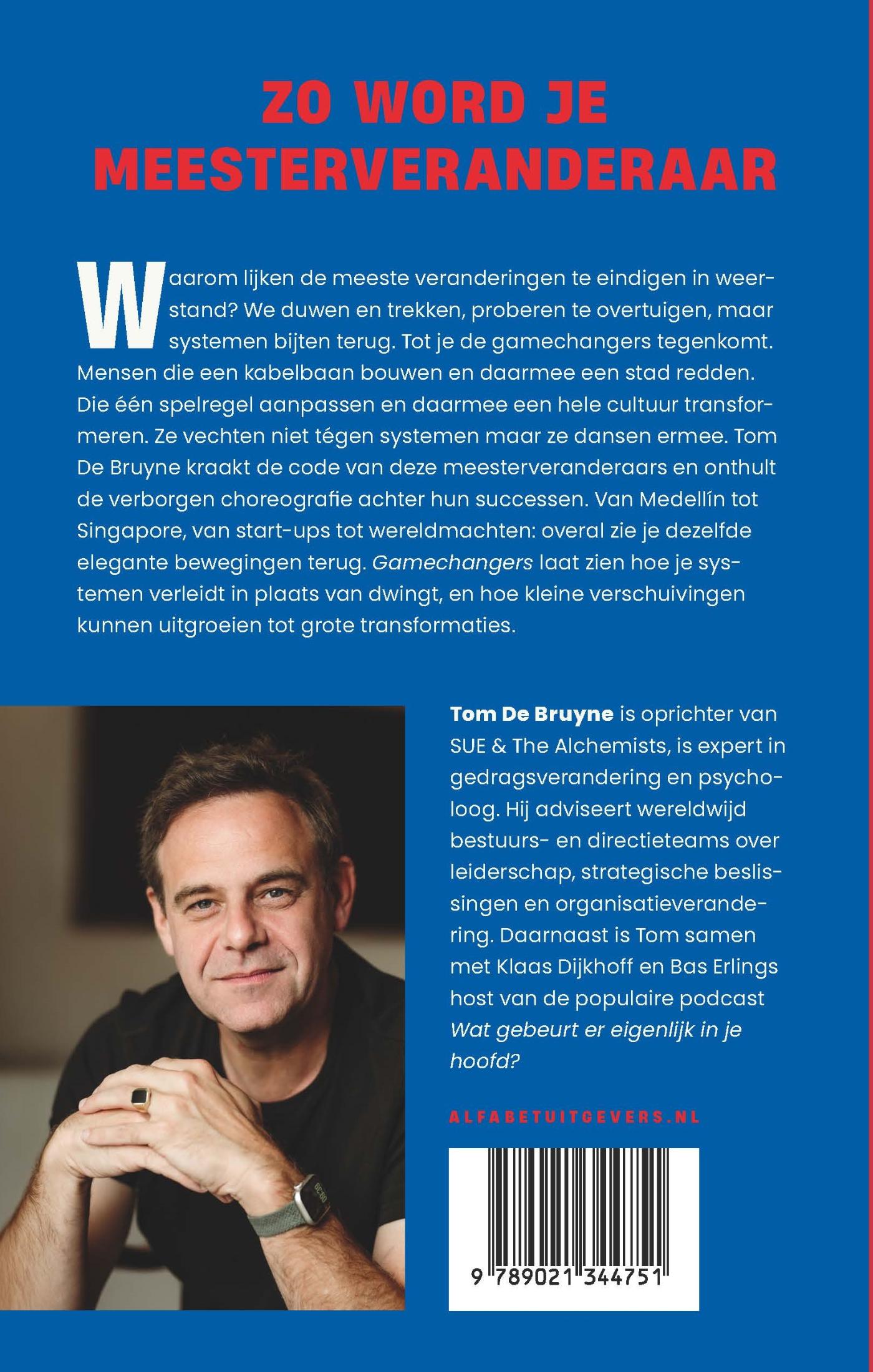 Waarom is de ene interventie enorm effectief, terwijl een andere juist averechts werkt? In Gamechangers toont psycholoog en gedragsexpert Tom De Bruyne hoe kleine gerichte ingrepen grote veranderingen kunnen bewerkstelligen in organisaties, gemeenschappen en zelfs landen. Van de transformatie van Medellín, waar één kabelbaan de stad nieuw leven inblies, tot de verbazingwekkende metamorfose van Singapore van moeras naar wereldmacht. De Bruyne onthult universele principes die overal kunnen werken: in bedrijven die zichzelf opnieuw uitvinden, in steden die opleven, en zelfs in persoonlijke relaties die van koers veranderen. Dit boek is voor iedereen die in verandering gelooft, maar wil weten hoe dat werkt in de praktijk.