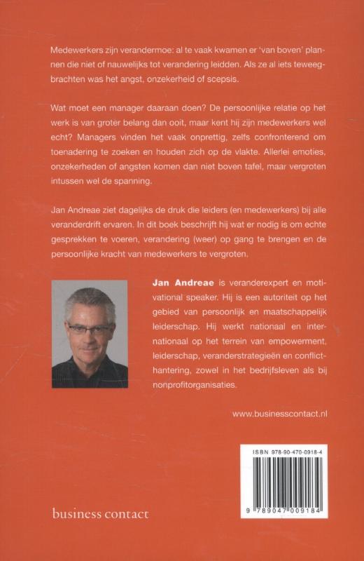 Jan Andreae ziet dagelijks de druk die leiders (en medewerkers) bij alle veranderdrift ervaren. In dit boek beschrijft hij wat er nodig is om echte gesprekken te voeren, verandering (weer) op gang te brengen en de persoonlijke kracht van medewerkers te vergroten.