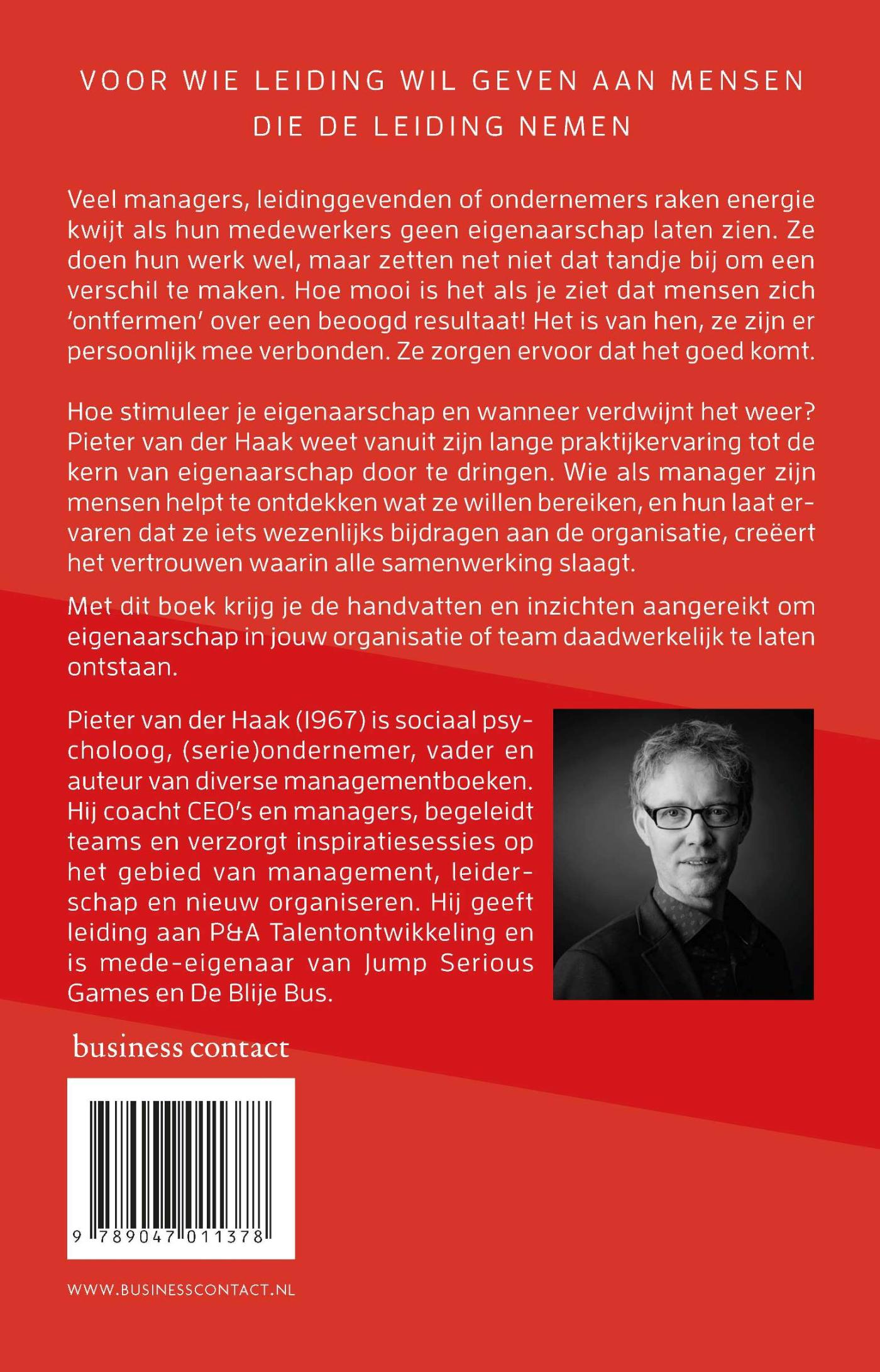 Pieter van der Haak weet als geen ander op basis van praktijkervaring tot de kern van de huidige eiderschapsimpasse door te dringen. En die impasse is: je wilt medewerkers meer eigenaarschap en verantwoording laten voelen, maar jij moet het als manager voor elkaar zien te krijgen. Hoe red je dat? Een van zijn oplossingen is regelruimte: Van der Haaks mooie term voor de essentie van het nieuwe leiderschap. Jouw taak als manager is om mensen te helpen ontdekken wat ze willen bereiken, hun te laten ervaren dat ze het kunnen en ervoor te zorgen dat ze iets wezenlijks bijdragen aan de organisatie. En dat alles in een context waarin vanuit vertrouwen wordt samengewerkt. Met dit boek krijg je de handvatten en inzichten aangereikt om eigenaarschap in jouw organisatie of team daadwerkelijk te zien ontstaan.