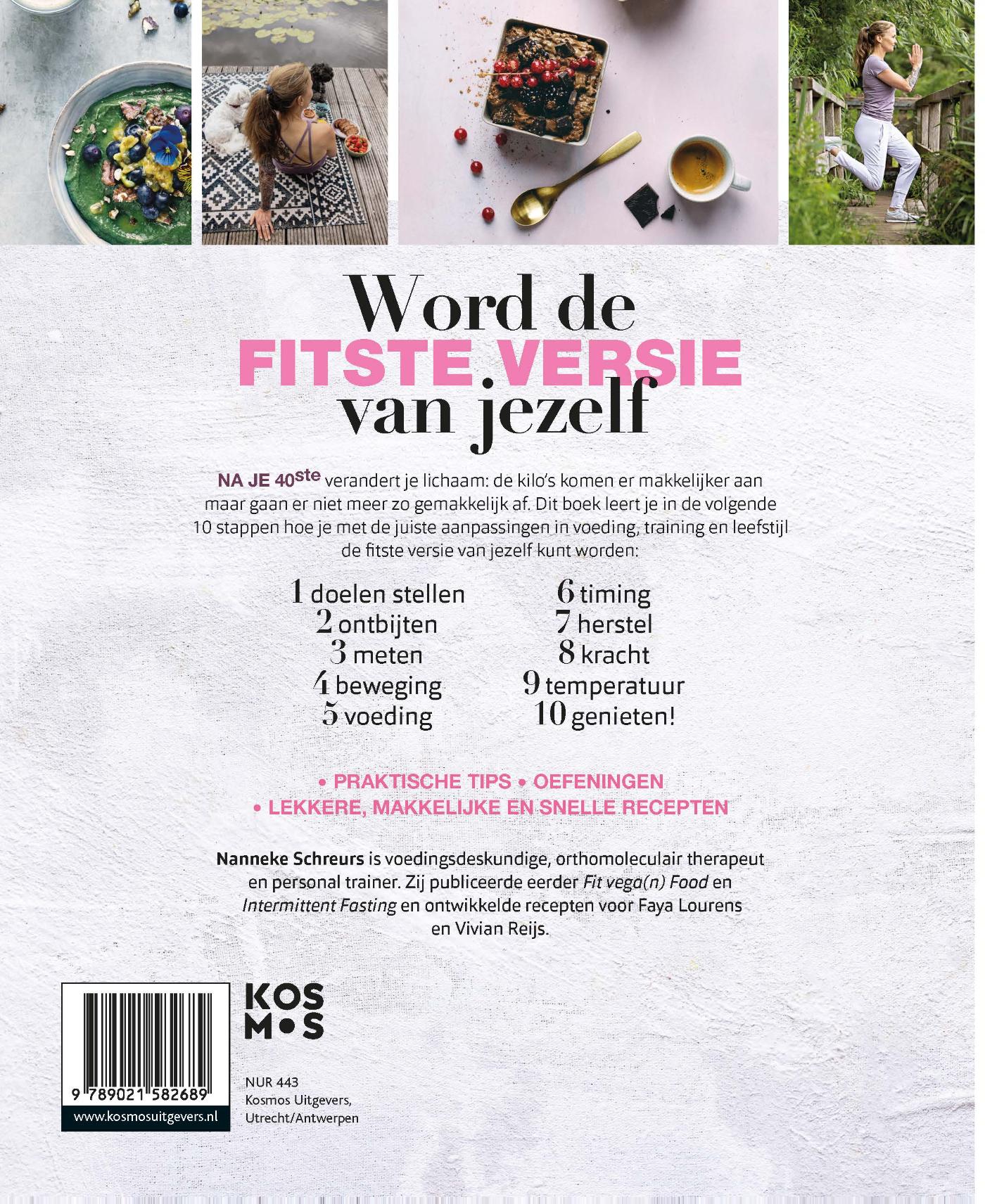 Met Nanneke Schreurs’ 'Fit Fab 40' word je de fitste versie van jezelf! Na je veertigste verandert je lichaam: de kilo’s komen er gemakkelijker aan, maar afvallen gaat niet meer zo eenvoudig. Dit boek leert je hoe je ook na je veertigste in 10 stappen met de juiste aanpassingen in voeding, training en leefstijl fit en slank door het leven kunt gaan. Vol met praktische tips, oefeningen en lekkere, makkelijke én snelle recepten.