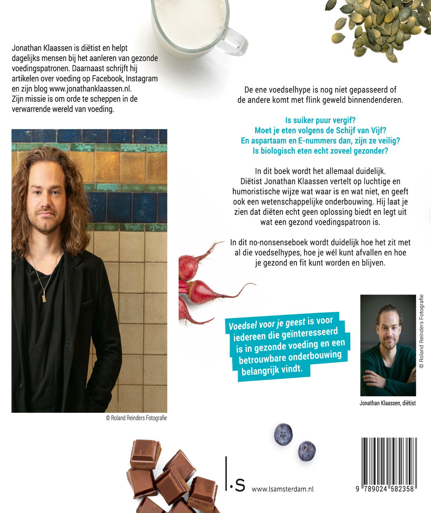 De voedselhypes vliegen ons om de oren. Wat moet je nog geloven en wat niet? In Voedsel voor je geest wordt dit allemaal duidelijk. Is de Schijf van Vijf onzin? Zijn zoetstoffen schadelijk? Is biologisch eten echt zoveel gezonder? Door tegenstrijdige berichten over voedsel is het niet meer duidelijk wat je wel of niet als waar kunt aannemen. Diëtist Jonathan Klaassen vertelt je wat waar is en wat niet en onderbouwt zijn bevindingen op wetenschappelijke wijze. Hij laat zien dat diëten geen oplossing bieden en legt uit wat een gezond voedingspatroon is. In dit no-nonsense boek wordt duidelijk hoe je wél kunt afvallen en hoe je gezond en fit kunt worden en blijven.