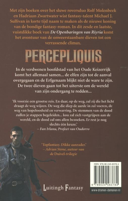 Met zijn boeken over het sluwe roversduo Rolf Molenbeek en Hadriaan Zwartwater wist Michael J. Sullivan in korte tijd naam te maken als de nieuwe koning van avontuurlijke fantasyromans. In dit zesde en laatste deel van De Openbaringen van Riyria komt het avontuur van de onweerstaanbare dieven tot een verrassende climax.