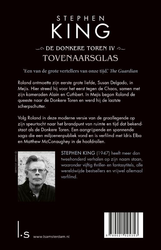 Tovenaarsglas is boek 4 van Stephen Kings epische fantasy-serie, de Donkere Toren. De serie is Stephen Kings magnum opus en een van de grootste epische successen van de afgelopen twintig jaar.