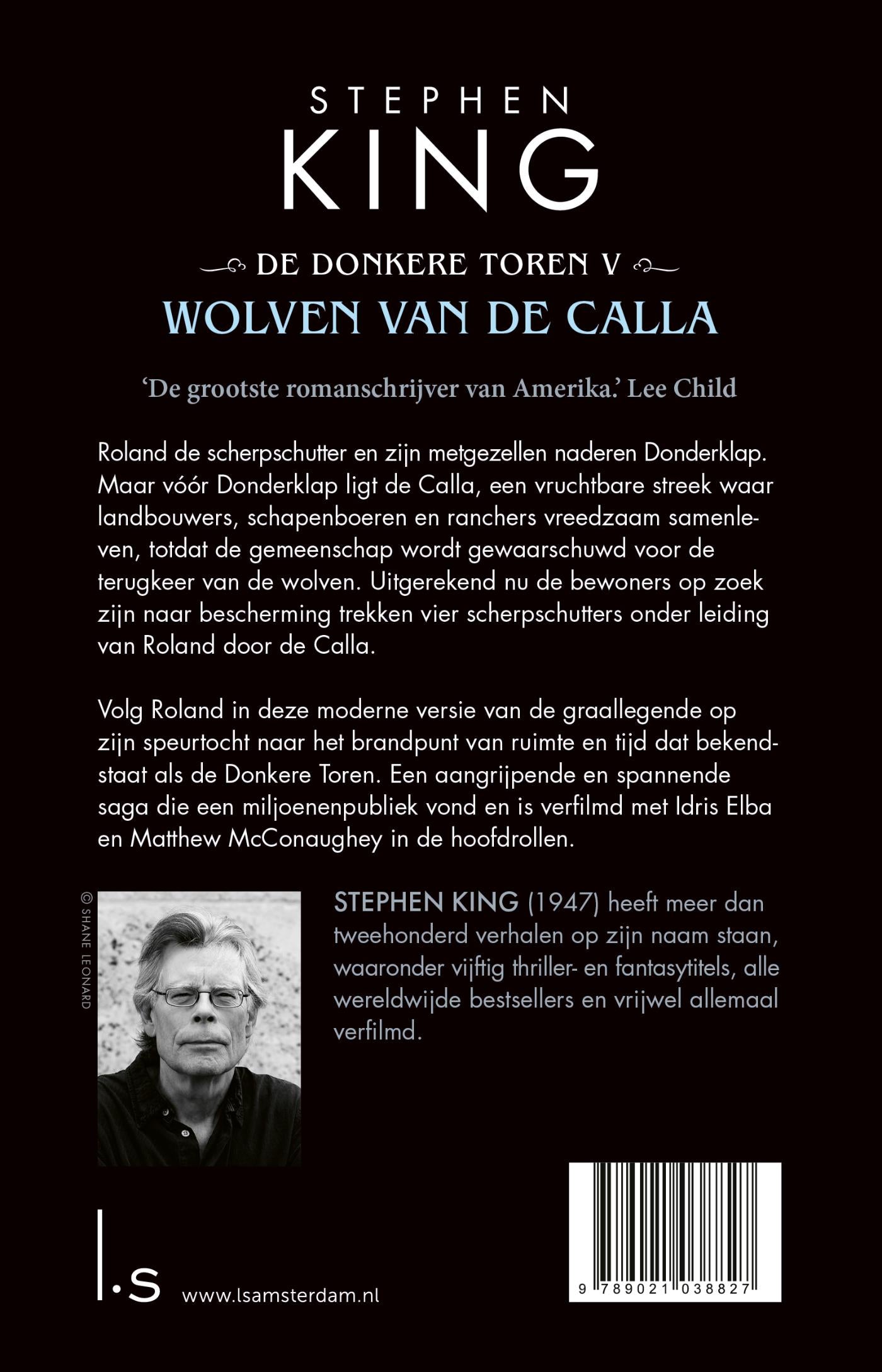 Wolven van de Calla is boek 5 van Stephen Kings epische fantasy-serie, de Donkere Toren. De serie is Stephen Kings magnum opus en een van de grootste epische successen van de afgelopen twintig jaar.