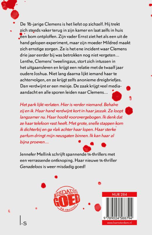 Jennefer Mellink, auteur van o.a. Kwaad bloed en Vermoorde onschuld, schreef met Genadeloos een ijzingwekkende psychologische YA-thriller met een verrassende twist aan het eind!