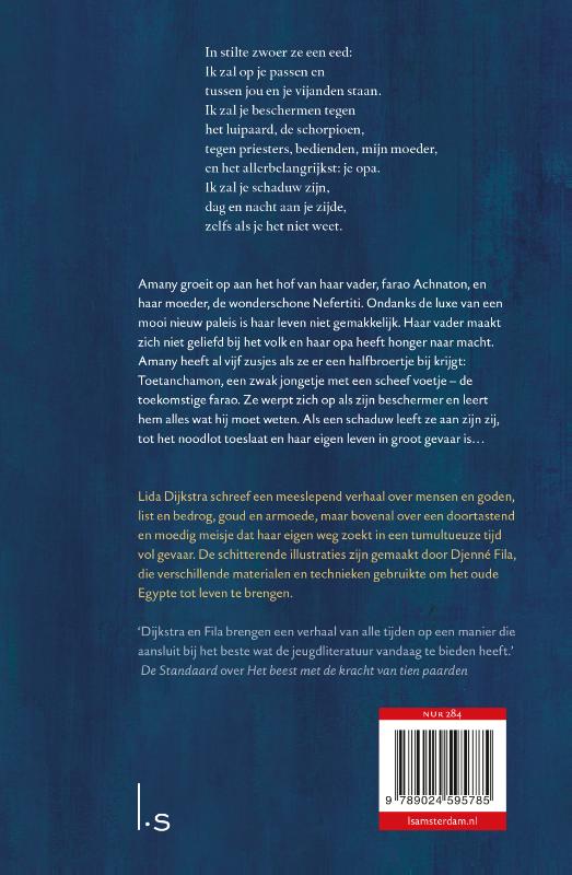 Anchesenamon groeit op aan het hof van haar vader, farao Achnaton, in het oude Egypte. Ondanks de luxe van een mooi nieuw paleis en een leven vol parades en feesten is haar leven niet gemakkelijk. Haar familie heeft honger naar macht en haar vader maakt zich niet geliefd bij het volk. Amany heeft al vijf zusjes als ze er een halfbroertje bij krijgt: Toetanchamon, een zwak jongetje met een scheef voetje – de toekomstige farao van Egypte. Ze werpt zich op als zijn beschermer en leert hem alles wat hij moet weten om in leven te blijven. Als een schaduw leeft ze aan zijn zij, en alles lijkt goed te gaan. Tot het noodlot toeslaat en haar eigen leven in groot gevaar is…