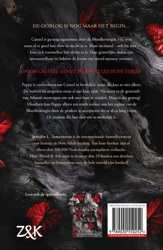 'De strijd van twee koninginnen' is het spannende vervolg in de Blood and Ash-serie van Jennifer L. Armentrout en gaat verder waar 'Kroon van gouden beenderen' ophield. Casteel weet maar al te goed hoe sluw en slecht de Bloedkoningin is. Toch is hij verbijsterd als hij over haar gruwelijke daden hoort. Poppy is vastbesloten om de koning te bevrijden, maar heeft daarvoor de hulp nodig van de generaals van Atlantië. Beiden moeten alles in de strijd gooien om een einde te maken aan wat de Bloedkoningin is begonnen. Dat betekent dat Poppy in het reine moet komen met de profetie die ze al zo lang vreest. De profetie die laat zien wie ze werkelijk is.