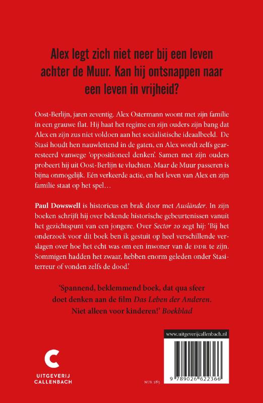 ‘Sector 20’ van Paul Dowswell is een spannend boek over spionage in de DDR. Alex woont in Oost-Berlijn. De Koude Oorlog is op haar hoogtepunt en Alex en z'n familie mogen de stad niet verlaten. Maar Alex is geen modelburger, en de Stasi houdt hem nauwlettend in de gaten. Alex krijgt te horen dat hij niet langer naar school mag, en zijn vakantiebaantje wordt op mysterieuze wijze opgezegd. Zijn ouders realiseren zich dat vluchten uit Oost-Duitsland misschien wel de enige mogelijkheid is. Maar de Muur passeren is bijna onmogelijk. En zelfs als het Alex en zijn familie lukt om te ontsnappen, is het dan mogelijk om uit de greep van de Stasi te blijven? Eén verkeerde actie, en het leven van Alex en zijn familie staat op het spel.
