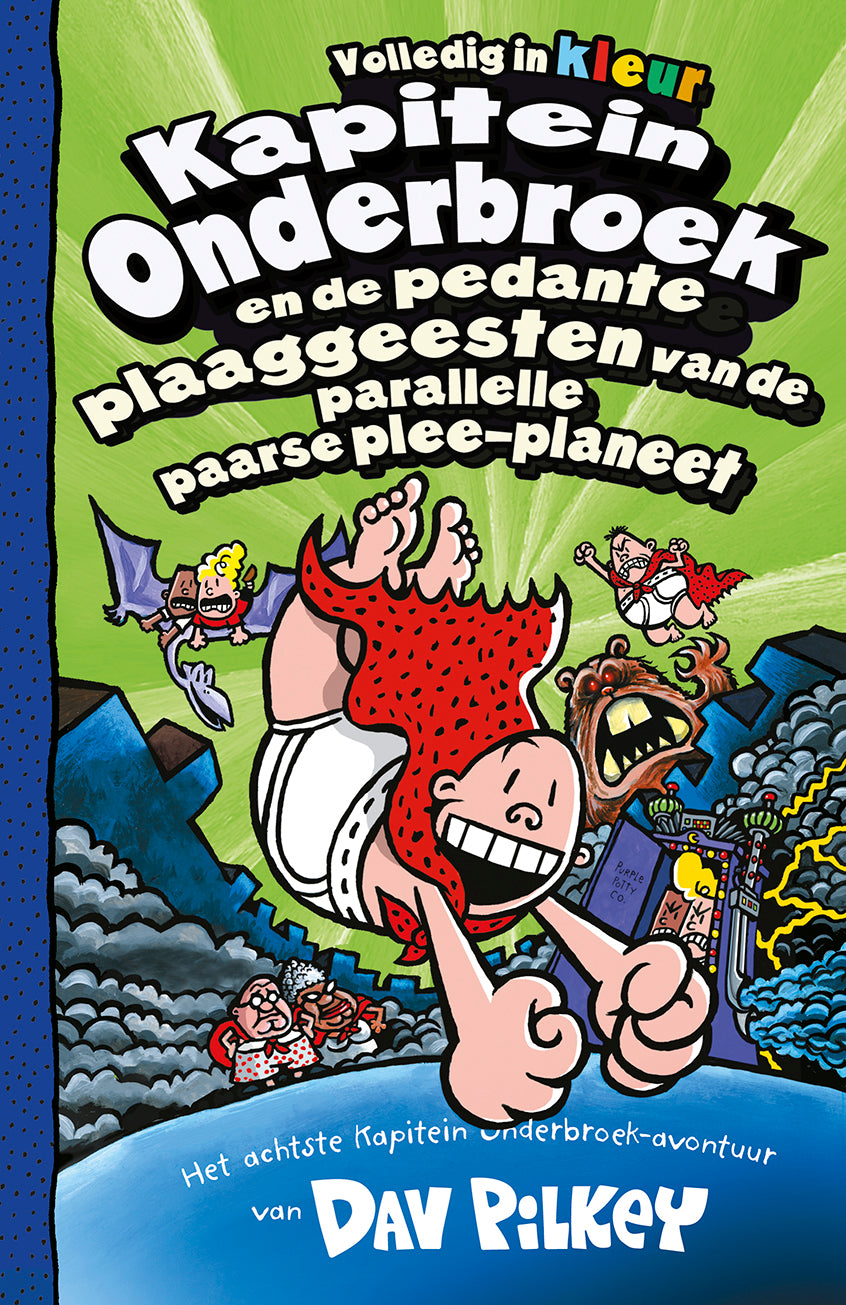 Kapitein Onderbroek en de pedante plaaggeesten van de parallelle paarse plee-planeet is het achtste deel in de supergrappige graphicnovelserie van Dav Pilkey. Volledig in kleur, voor kinderen vanaf 8 jaar. Bekend van de succesvolle Netflix-serie en film.