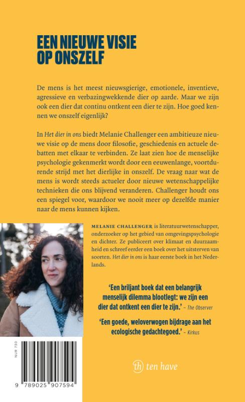 In 'Het dier in ons' biedt Melanie Challenger een ambitieuze nieuwe visie op de mens door filosofie, geschiedenis en actuele debatten met elkaar te verbinden. Ze laat zien hoe de menselijke psychologie gekenmerkt wordt door een eeuwenlange, voortdurende strijd met het dierlijke in onszelf. De vraag naar wat de mens is wordt steeds actueler door nieuwe wetenschappelijke technieken die ons blijvend veranderen. Challenger houdt ons een spiegel voor, waardoor we nooit meer op dezelfde manier naar de mens kunnen kijken.