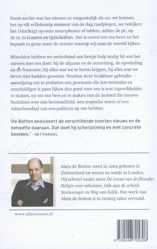Nooit eerder was het nieuws zo toegankelijk als nu: het nieuws kunnen we op elk willekeurig moment van de dag raadplegen, we bekijken het nieuws (vluchtig) op onze smartphones of tablets, achter de pc, op de tv, in kranten en tijdschriften. Het nieuws is overal om ons heen en het bepaalt in grote mate de manier waarop wij naar de wereld kijken. Misschien hebben we onderhand een beetje hulp nodig bij wat het nieuws met ons doet: bij de afgunst en de ontzetting, de opwinding en de frustratie; bij alles wat we te horen krijgen, bij alles wat we liever niet hadden geweten.