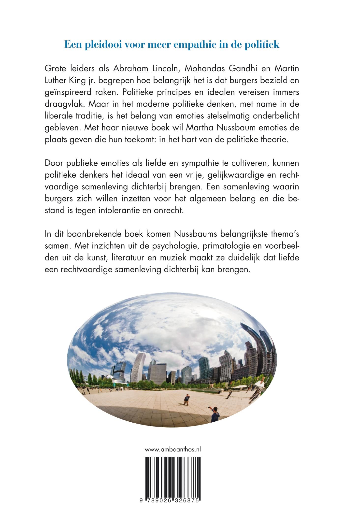 Martha Nussbaum is een van ’s werelds invloedrijkste politieke denkers. In haar nieuwe boek 'Politieke emoties' voegt zij haar belangrijkste gedachtegoed – de filosofie van emoties en de theorie van sociale rechtvaardigheid – samen tot een pleidooi voor meer empathie in het politieke denken.