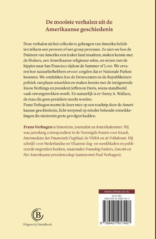 Henry A. Wallace heette hij, en van 1941 tot 1945 was hij vicepresident van de Verenigde Staten van Amerika onder Franklin Delano Roosevelt. Hij was de man die geen president mocht worden en zijn verhaal is een van de verhalen in het nieuwe boek van Frans Verhagen. Samen vertellen die een veel groter verhaal over de fascinerende geschiedenis van de Verenigde Staten. Aan bod komen onder meer de expeditie van Lewis enClark, hoe de Democraten Republikeinen werden en omgekeerd, de intrigerende Know Nothings en het Apenproces. Een belangwekkend kijkje in minder bekende maar bepalende ontwikkelingen in de Amerikaanse geschiedenis.