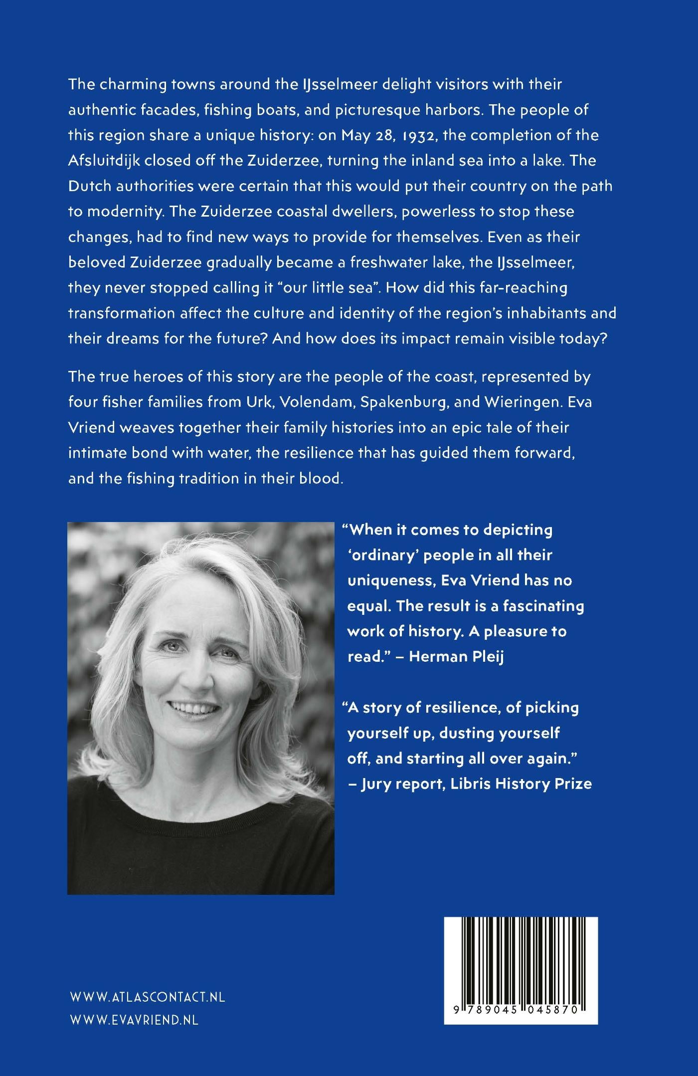 ‘Where the Zuiderzee Once Raged’ by Eva Vriend is a story of the true heroes of the coast, represented by four fisher families from Urk, Volendam, Spakenburg, and Wieringen. Eva Vriend weaves together their family histories into an epic tale of their intimate bond with water, the resilience that has guided them forward, and the fishing tradition in their blood.