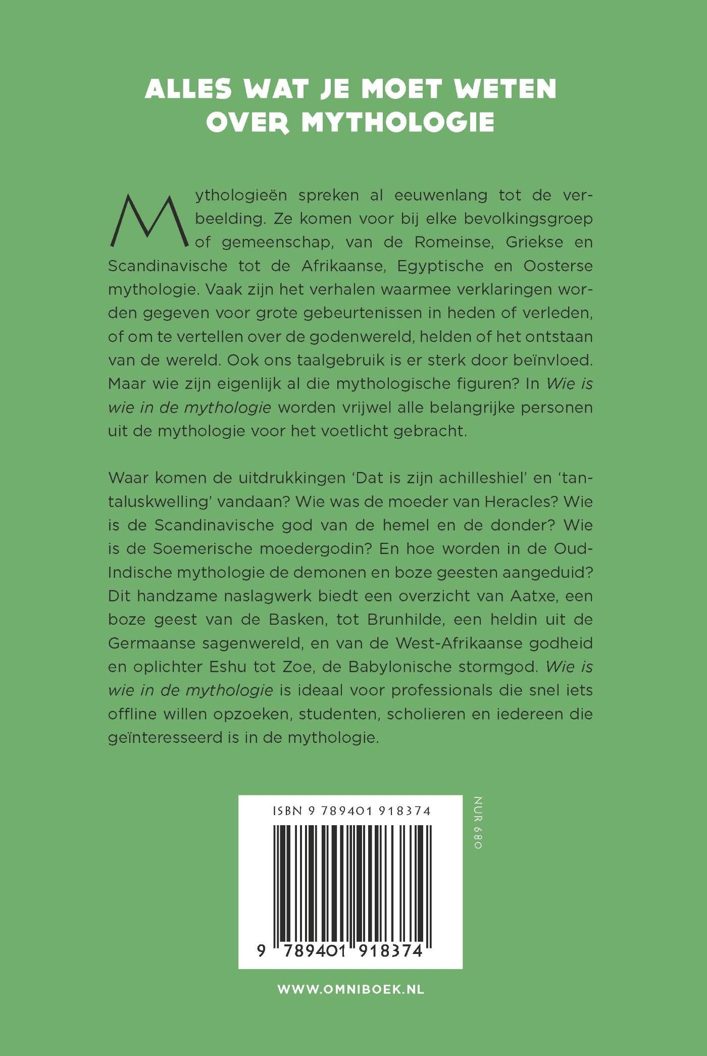 ‘Wie is wie in de mythologie’ is een handzaam naslagwerk, dat op overzichtelijke en vakkundige wijze alle belangrijke mythologisch figuren belicht. Naast de klassieke Griekse en Romeinse mythologie wordt in dit overzicht ook ruim aandacht geschonken aan de Egyptische en Oosterse mythologie. Verder komen ook de mythologieën van de Amerikaanse en de Afrikaanse volkeren aan bod. Kortom: een overzicht van mythologische verschijningen van over de hele wereld.
