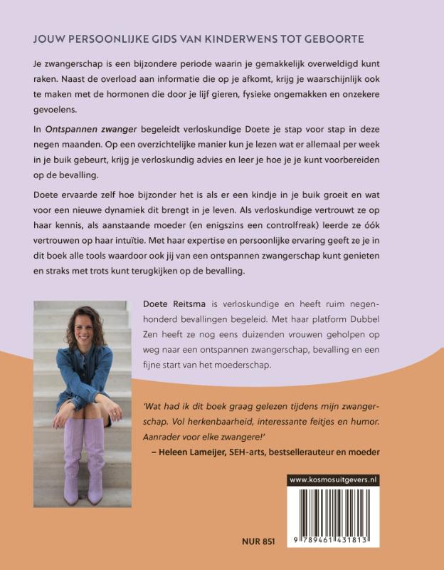 "Ontspannen zwanger" is gebaseerd op Doete's persoonlijke ervaringen en verloskundige expertise. Ze deelt openhartig haar uitdagingen als zwangere vrouw en laat zien hoe ze als controlfreak leerde vertrouwen op haar intuïtie. Het boek biedt praktische tips, adviezen en inspiratie om zwangere vrouwen stap voor stap te begeleiden naar de geboorte van hun kindje zodat zij met trots kunnen terugkijken.