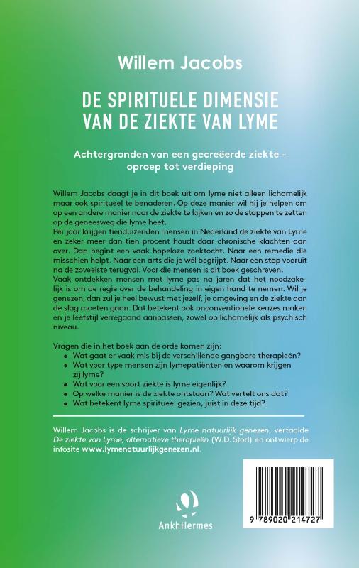 In De spirituele dimensie van de ziekte van Lyme onderzoekt Willem Jacobs de achtergronden van de ziekte van Lyme en doet hij een oproep tot verdieping. Want de ziekte begint binnen onze westerse cultuur een epidemie te worden, met ernstige proporties. Ernstig, omdat veel Lymepatiënten helemaal niet kunnen genezen en de ziekte bij hen chronisch wordt. Willem Jacobs kijkt kritisch naar de huidige behandeling, zowel regulier en alternatief. Ook stelt hij vragen die medisch niet erg gangbaar zijn. Welke mensen krijgen Lyme? Hoe hangt hun aard en karakter samen met de ziekte? Wat voor een type ziekte is het eigenlijk? Hij gaat in op hoe deze agressieve ziekte, nog maar kort geleden (in de jaren '70 van de vorige eeuw) is ontstaan. Door deze vragen te stellen wordt duidelijk dat Lyme ook een andere 'dimensie' dan alleen een lichamelijke heeft. Om Lyme te kunnen begrijpen en te kunnen behandelen moeten we de ziekte ook spiritueel opvatten. Daar komt nog bij dat Lyme op een intensieve manier met geestelijke veranderingen in onze tijd samenhangt. Om chronische Lyme goed te kunnen behandelen - en in de toekomst te kunnen voorkomen - zal volgens Willem Jacobs, veel in de behandeling - die tot nu toe altijd alleen op het fysieke lichaam gericht was - moeten veranderen.
