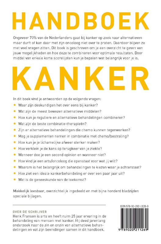 Handboek Kanker van Henk Fransen is het meest complete boek over kanker. Het combineert op unieke wijze reguliere en alternatieve geneeswijzen, zonder het een of het ander af te wijzen.
