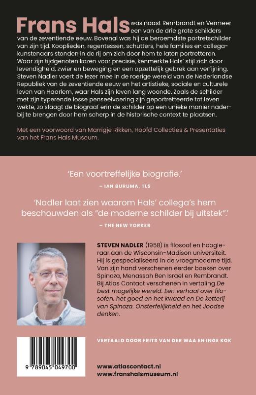 Steven Nadler voert de lezer mee in de roerige wereld van de Nederlandse Republiek van de zeventiende eeuw en het artistieke, sociale en culturele leven van Haarlem, waar Frans Hals zijn leven lang woonde. Zoals de schilder met zijn typerende losse penseelvoering zijn geportretteerde tot leven wekte, zo slaagt de biograaf erin de schilder op een unieke manier naderbij te brengen door hem scherp in de historische context te plaatsen.