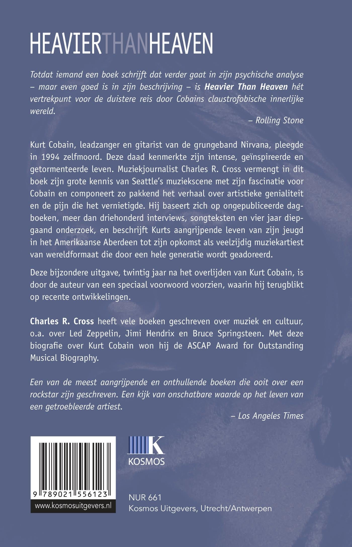 Heavier than Heaven is geschreven door journalist Charles R. Cross, een autoriteit op het gebied van rockcultuur. Hij schreef vele boeken over muziek en cultuur. Met deze biografie over Cobain won hij de ASCAP Award for Outstanding Biography.