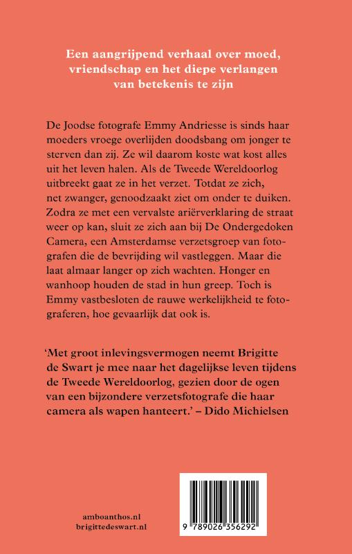 'Met groot inlevingsvermogen neemt Brigitte de Swart je mee naar het dagelijkse leven tijdens de Tweede Wereldoorlog, gezien door de ogen van een bijzondere Joodse fotografe die haar camera als wapen hanteert.' - Dido Michielsen