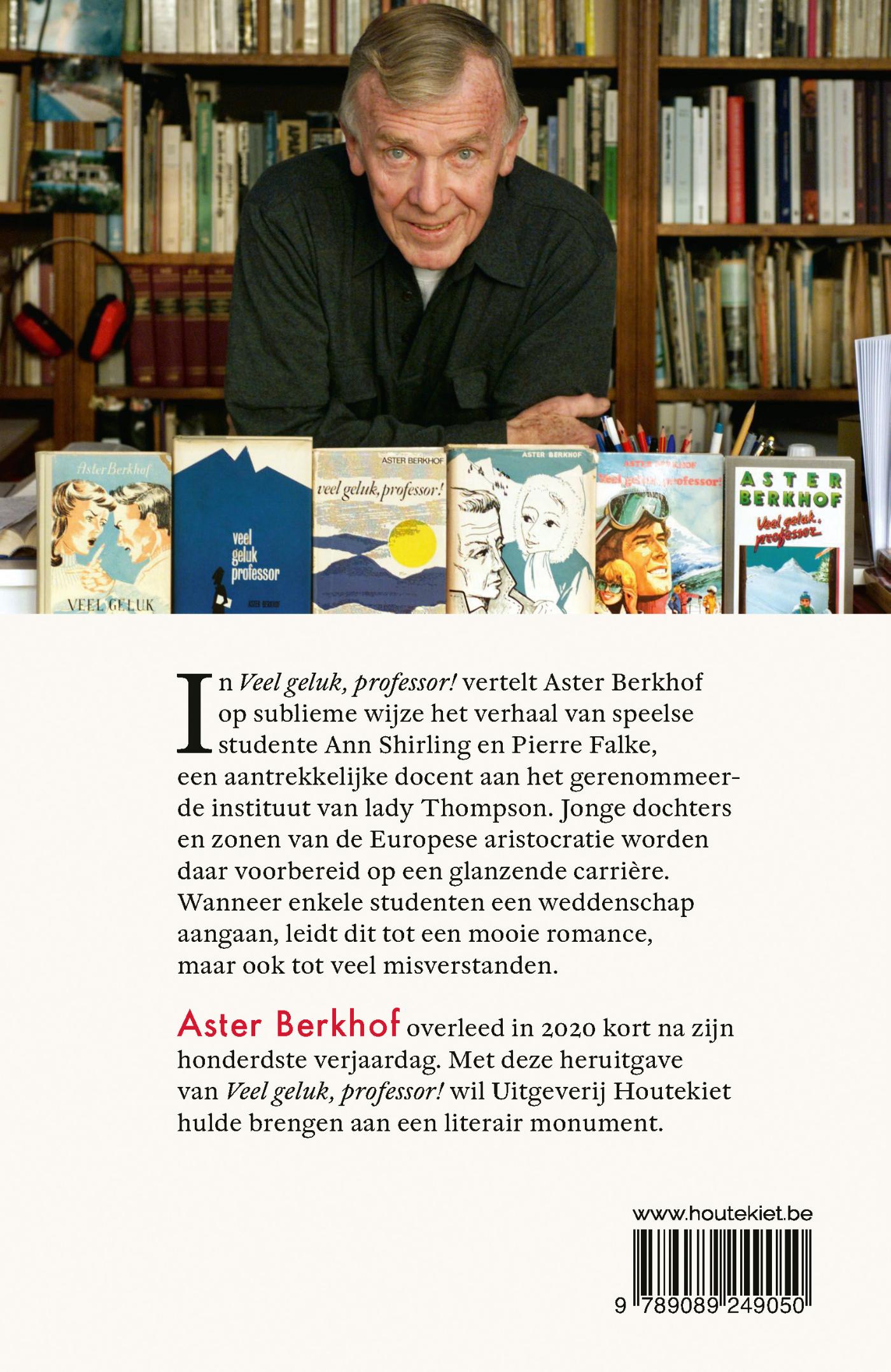 In Veel geluk, professor! vertelt Aster Berkhof op sublieme wijze het verhaal van Pierre Falke, een aantrekkelijke docent literatuurgeschiedenis aan het gerenommeerde instituut van Lady Thompson. Jonge dochters en zonen van de Europese aristocratie worden daar voorbereid op een glanzende carrière. Wanneer enkele studenten een weddenschap aangaan, leidt dit tot een mooie romance, maar ook tot veel misverstanden.