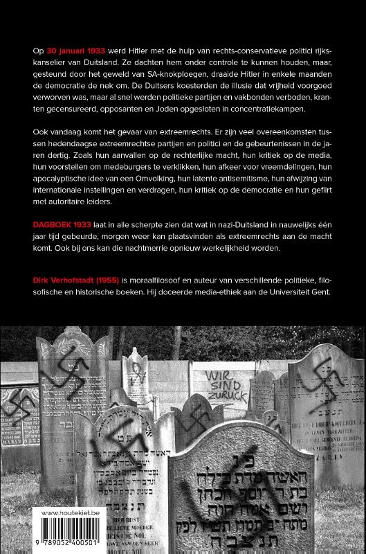 DAGBOEK 1933 laat in alle scherpte zien dat wat in nazi-Duitsland in nauwelijks één jaar tijd gebeurde, morgen weer kan plaatsvinden als extreemrechts aan de macht komt. Ook bij ons kan die nachtmerrie opnieuw werkelijkheid worden.