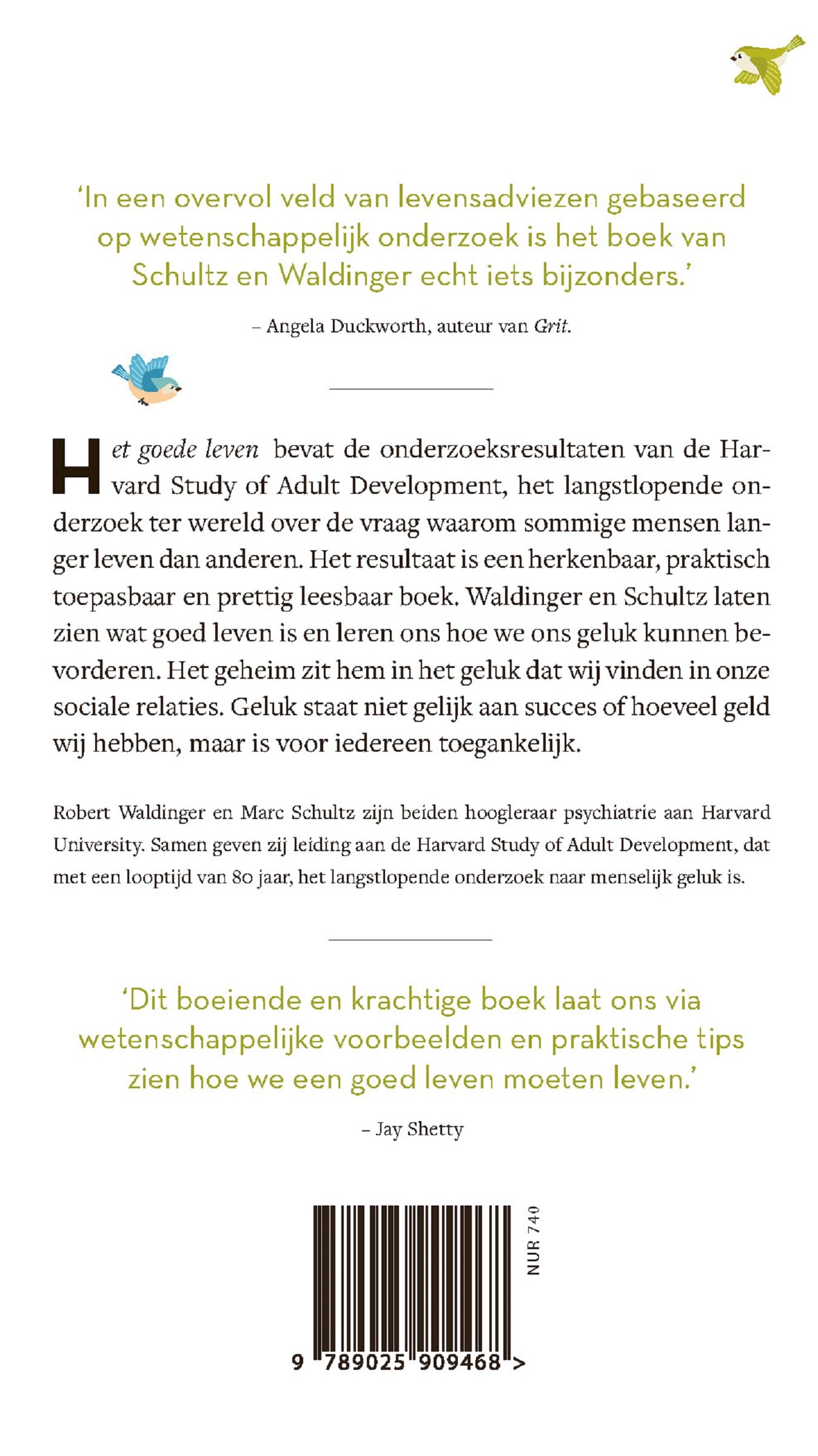 ‘Het goede leven’ van Robert Schulz en Marc Waldinger bevat de onderzoeksresultaten van de Harvard Study of Adult Development, het langstlopende onderzoek ter wereld over de vraag waarom sommige mensen langer leven dan anderen. Het resultaat is een herkenbaar, praktisch toepasbaar en prettig leesbaar boek.