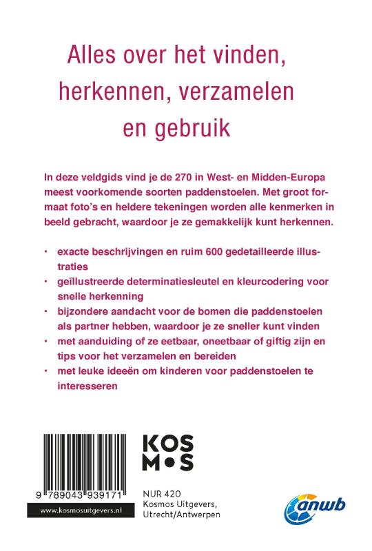 In de ANWB Paddenstoelengids van Markus Flück vind je de 270 in West- en Midden-Europa meest voorkomende soorten paddenstoelen. Met groot formaat foto's en meer dan 600 heldere illustraties worden alle kenmerken in beeld gebracht, waardoor je ze gemakkelijk kunt herkennen. Er is bijzondere aandacht voor de bomen die paddenstoelen als partner hebben, waardoor je ze ook sneller kunt vinden. En voor wie paddenstoelen wil zoeken om te eten, zijn er behalve de aanduiding of ze eetbaar, oneetbaar of giftig zijn, ook tips voor het verzamelen en bereiden. Inclusief leuke ideeën om kinderen voor paddenstoelen te interesseren.