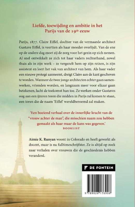 Al snel is ze haar vaders rechterhand, zowel thuis als in zijn werk – ze vergezelt hem op zijn reizen, is zijn privésecretaris, en leert het vak van architect van zijn hand. Als haar vader een nieuwe protegé aanneemt, Adolphe Stalles, dreigt Claire opnieuw aan de kant geschoven te worden. Maar wanneer de twee jonge architecten samenwerken, vrienden worden, en langzaam meer voor elkaar gaan betekenen, lacht de toekomst hen toe. Ze werken onder Gustave’s oog aan een ijzeren toren die midden in Parijs zal komen te staan, een toren die de naam ‘Eiffel’ beroemd zal maken.