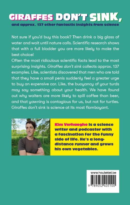Other surprising insights include: men who are told that they have a small penis suddenly feel a greater urge to buy an expensive car, there is a reason why waiters spill more coffee than beer, and yawning is contagious for us but not for turtles. Giraffes don’t sink is science at its most flamboyant.