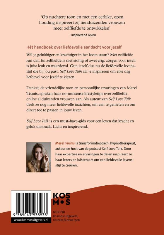 Self Love Talk van Merel Teunis is hét handboek over liefdevolle aandacht voor jezelf. Wil je gelukkiger en krachtiger in het leven staan? Begin dan met zorgen voor jezelf. En zelfliefde is niet stoffig of zweverig, zorgen voor jezelf is juist leuk en waardevol. Gun jezelf dus nu een liefdevolle levensstijl die bij jou past. Self Love Talk zal je inspireren om elke dag liefdevol voor jezelf te kiezen.