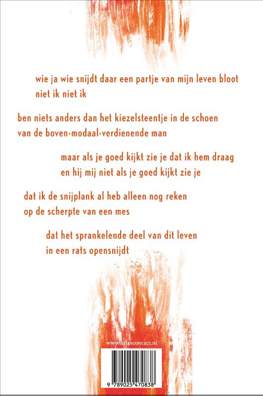 Emma van Hooff trekt je mee in een bundel over leven en niet leven, over angst om dood te gaan en tegelijkertijd het verlangen ernaar. Aan het woord is een zintuiglijk, gevoelig lyrisch ik, met veel lef en humor. Er worden dreigbrieven geschreven aan Pandora, er is een hiernamaals dat op instorten staat, een woeste transpiratiezee, er zijn oesters met parels en er is een onderzoek naar de rekking van een leven; hoe lang het duurt totdat een gezicht uiteen knapt. De gedichten in deze wonderschone bundel zijn ritmisch en sterk. Emma van Hooff overtuigt met haar inlevingsvermogen en enorme verbeeldingskracht.