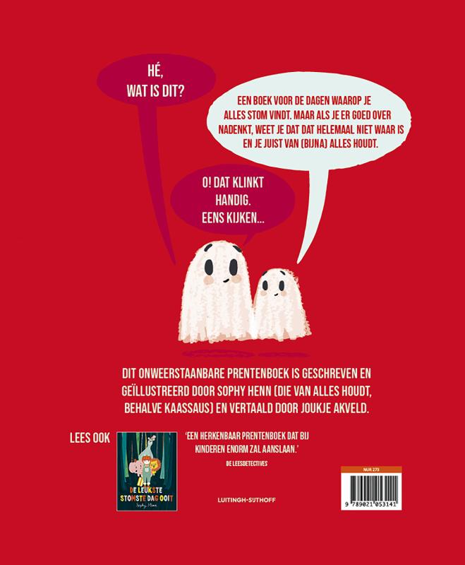 Bijna alle kinderen hebben weleens een dag waarop ze alles stom vinden. Het spookje in dit boek in elk geval wel. Maar vindt hij echt álles stom? Zelfs snoep, verkleden, konijntjes en taart? Dit vrolijke en kleurrijke prentenboek laat zien dat er juist heel veel leuke dingen zijn - ook op de dagen dat je (bijna) alles stom vindt.