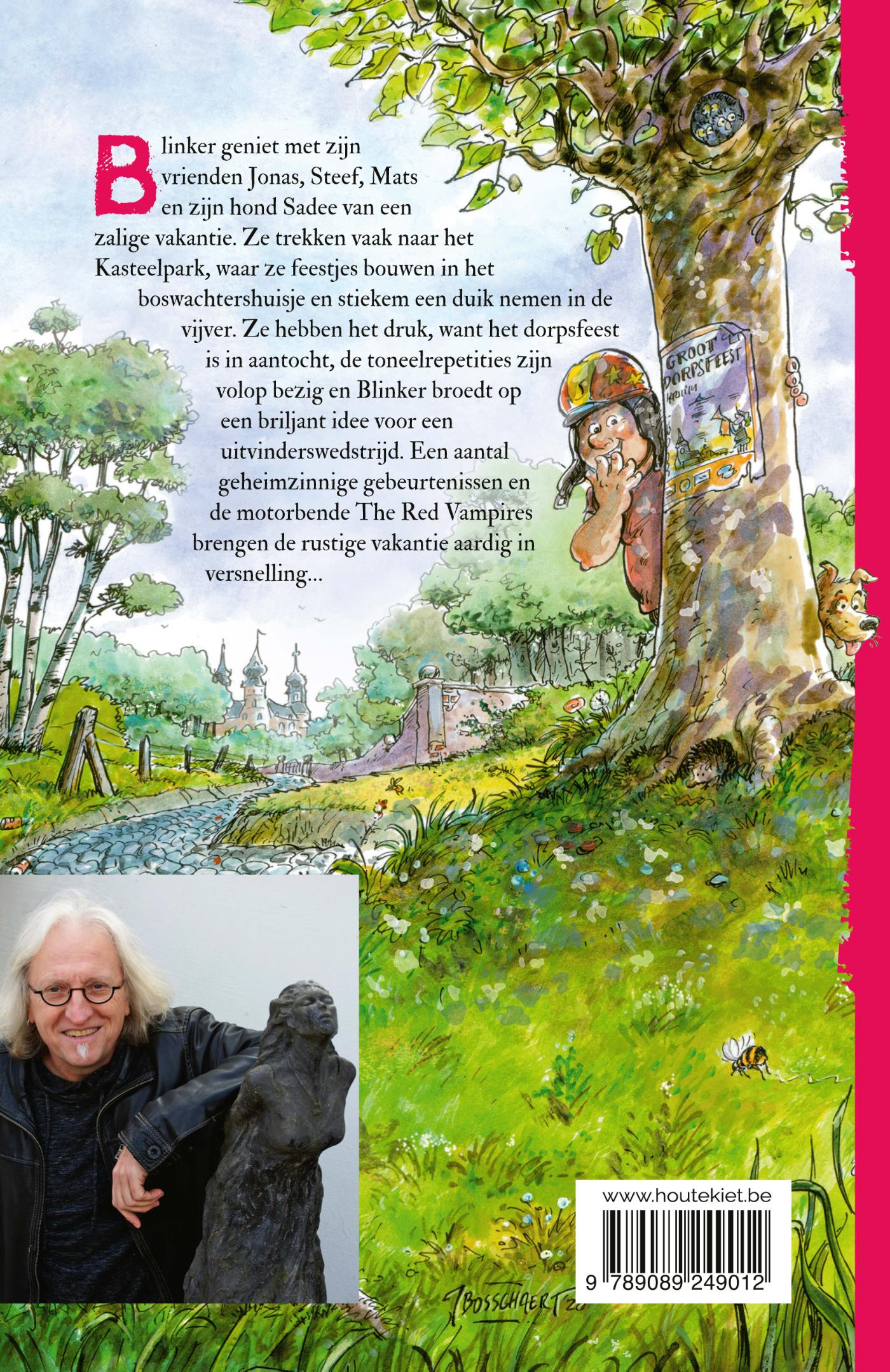 Blinker geniet met zijn vrienden Jonas, Steef, Mats en zijn hond Sadee van een zalige vakantie. Ze trekken vaak naar het Kasteelpark, waar ze feestjes bouwen in het boswachtershuisje en stiekem een duik nemen in de vijver. Ze hebben het druk, want het dorpsfeest is in aantocht, de toneelrepetities zijn volop bezig en Blinker broedt op