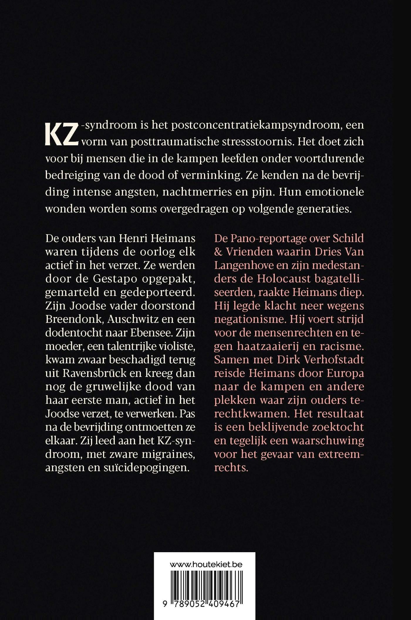 De ouders van Henri Heimans waren tijdens de oorlog elk actief in het verzet. Ze werden door de Gestapo opgepakt, gemarteld en gedeporteerd. Zijn Joodse vader doorstond Breendonk, Auschwitz en een dodentocht naar Ebensee. Zijn moeder, een talentrijke violiste, kwam zwaar beschadigd terug uit Ravensbrück en kreeg dan nog de gruwelijke dood van haar eerste man, actief in het Joodse verzet, te verwerken. Pas na de bevrijding ontmoetten ze elkaar. Zij leed aan het KZ-syndroom, met zware migraines, angsten en suïcidepogingen.