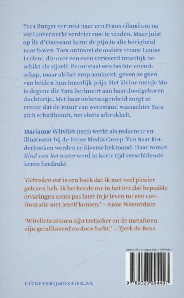 Yara Burger is vastgelopen. Na jaren ogenschijnlijk onvermoeibaar geleefd te hebben, moet ze er nu aan geloven. Het gaat zo niet langer. Ze vertrekt naar een Frans eiland om met zichzelf in het reine te komen. Maar juist daar, op Ile dOussant, maken ontmoetingen met anderen het onmogelijk de pijn voor zichzelf te houden.
