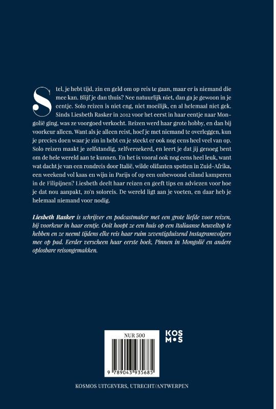 Liesbeth Rasker, fervent soloreiziger, laat in 'Solo reizen' zien hoe je in je eentje de wereld verkent. Stel, je hebt tijd, zin en geld om op reis te gaan, maar er is niemand die mee kan. Blijf je dan thuis? Natuurlijk niet!