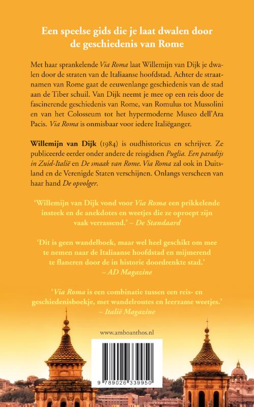 ‘Willemijn van Dijk vond voor Via Roma een prikkelende insteek [en] de anekdotes en weetjes die ze oproept zijn vaak verassend. Het boek is bovendien stijlvol vormgegeven en zelfs de details kloppen.’ - De Standaard