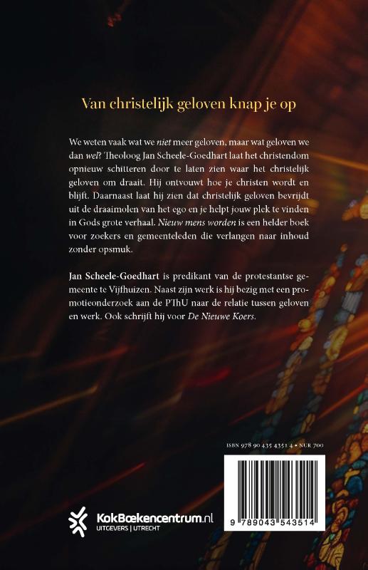 In 'Nieuw mens worden' laat theoloog Jan Scheele-Goedhart het christendom opnieuw schitteren door te laten zien waar het christelijk geloof om draait. Hij ontvouwt hoe je christen wordt en blijft. Daarnaast laat hij zien dat christelijk geloven bevrijdt uit de draaimolen van het ego en je helpt jouw plek te vinden in Gods grote verhaal. Voor iedereen die het geloof opnieuw wil leren verstaan, of misschien wel voor het eerst.