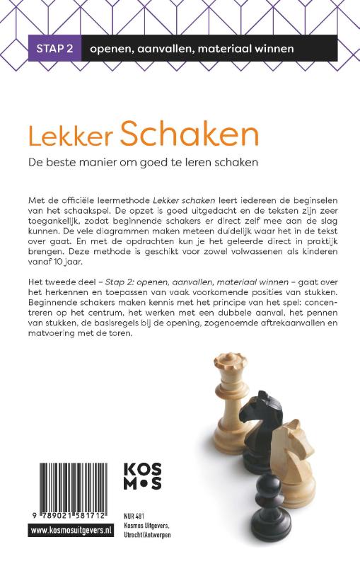 Door de tv-serie The Queen’s Gambit is schaken in korte tijd populair geworden. Met de reeks ‘Lekker schaken’ leer je snel en gemakkelijk de beginselen van het schaakspel. De opzet is goed uitgedacht en de teksten zijn zeer toegankelijk, zodat beginnende schakers er direct zelf mee aan de slag kunnen. De vele diagrammen maken meteen duidelijk waar het in de tekst over gaat. En met de opdrachten kun je het geleerde direct in praktijk brengen. Deze officiële leermethode is geschikt voor zowel volwassenen als kinderen vanaf 10 jaar. Met een voorwoord van Hans Böhm.