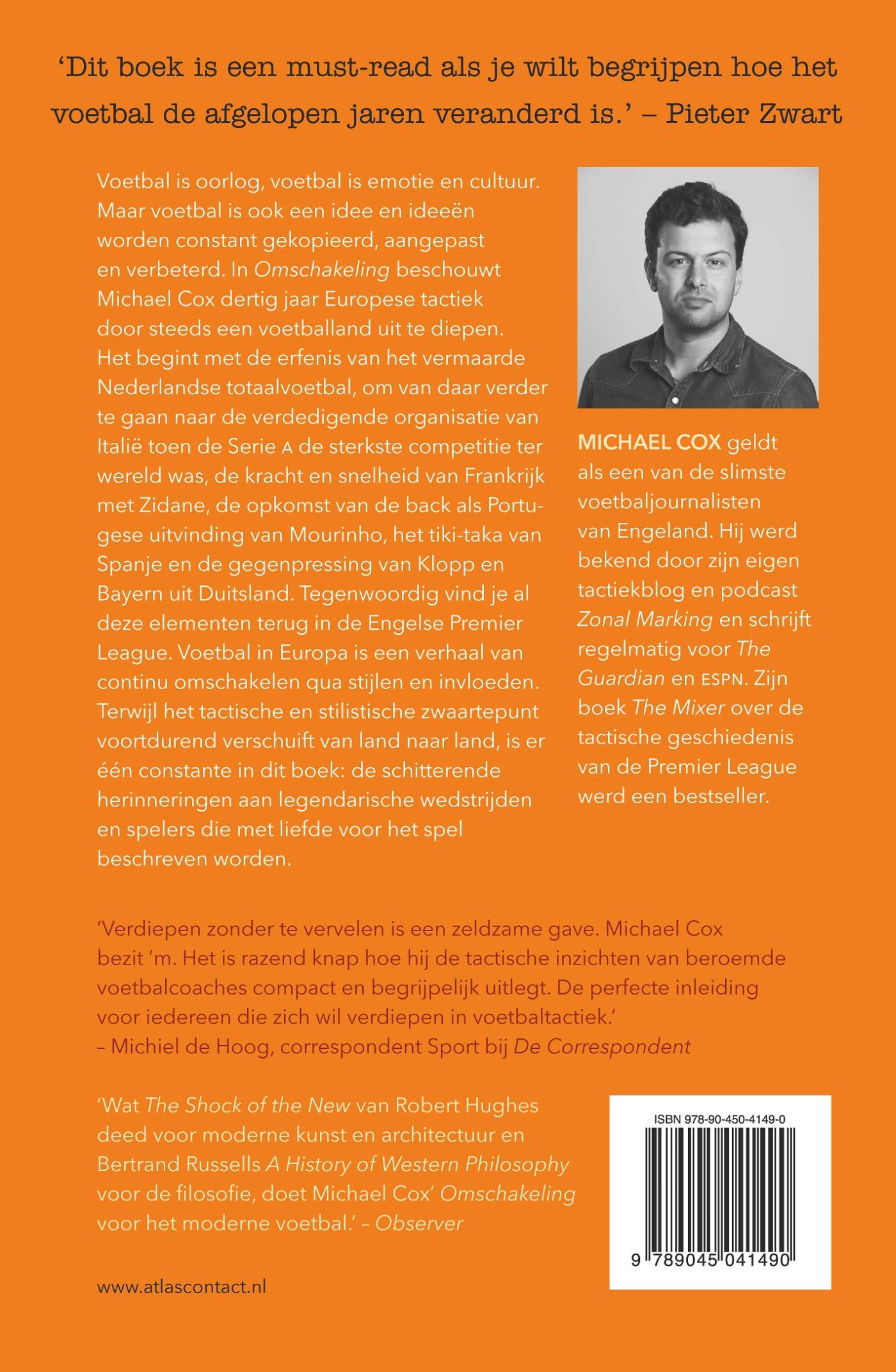 In Omschakeling beschouwt Cox dertig jaar Europese tactiek door steeds een voetballand uit te diepen. Het begint met de erfenis van het vermaarde Nederlandse totaalvoetbal, om van daar verder te gaan naar de verdedigende organisatie van Italië toen de Serie A de sterkste competitie ter wereld was, de kracht en snelheid van Frankrijk met Zidane, de opkomst van de back als Portugese uitvinding van Mourinho, het tikitaka van Spanje en de Gegenpressing van Klopp en Bayern uit Duitsland. Tegenwoordig vind je al deze elementen terug in de Engelse Premier League.